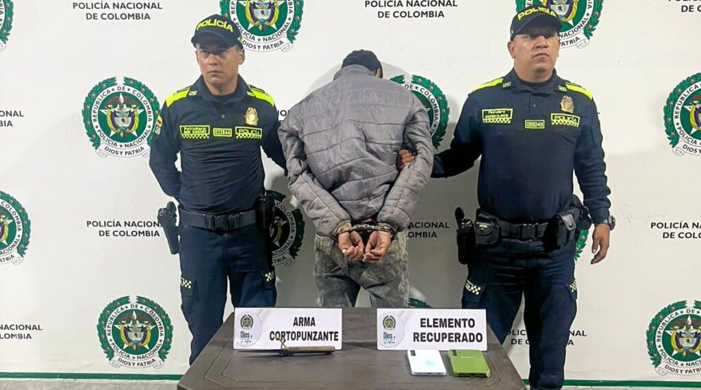 Un hombre de 25 años fue detenido por la Policía en el barrio Santofimio, al sur de Ibagué, tras ser sorprendido con un arma blanca y un celular que habría sido robado minutos antes mediante la modalidad de raponazo.