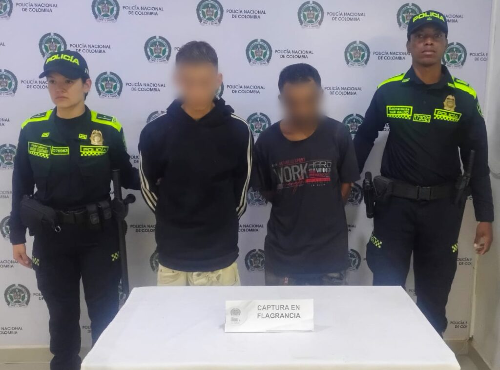 La rápida acción de la Policía Nacional permitió frustrar un intento de hurto en una tienda del barrio Modelia 1, donde fueron capturados en flagrancia dos hombres conocidos como “El Rolo” y “El Paisa”, de 25 y 39 años respectivamente.